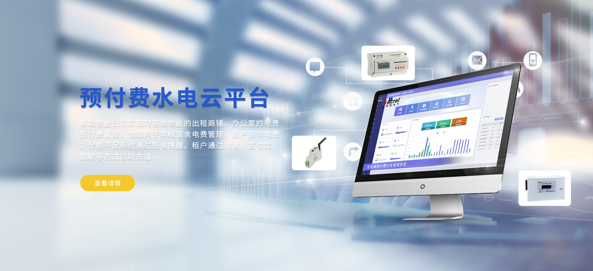 安科瑞提供的解決方案包括Acrel-EIoT能源物聯(lián)網(wǎng)云平臺(tái)變電所運(yùn)維云平臺(tái)安全用電管理云平臺(tái)環(huán)保用電監(jiān)管云平臺(tái)智慧消防云平臺(tái)能源管理云平臺(tái)、工業(yè)企業(yè)能源管控平臺(tái)、遠(yuǎn)程預(yù)付費(fèi)云平臺(tái)餐飲油煙監(jiān)管云平臺(tái)電動(dòng)汽車(chē)/電瓶車(chē)充電樁收費(fèi)管理云平臺(tái)、電力監(jiān)控/無(wú)線測(cè)溫系統(tǒng)、電能質(zhì)量治理系統(tǒng)、電氣火災(zāi)監(jiān)控系統(tǒng)消防設(shè)備電源監(jiān)控系統(tǒng)防火門(mén)監(jiān)控系統(tǒng)應(yīng)急照明和疏散指示系統(tǒng)、智能照明控制系統(tǒng)、醫(yī)用隔離電源絕緣監(jiān)測(cè)系統(tǒng)等,幫助用戶實(shí)現(xiàn)能源智能化、可視化、精細(xì)化管理,提高用能效率和用能安全,為企業(yè)節(jié)能降耗和實(shí)現(xiàn)能源數(shù)字化建設(shè)提供數(shù)據(jù)服務(wù)。
